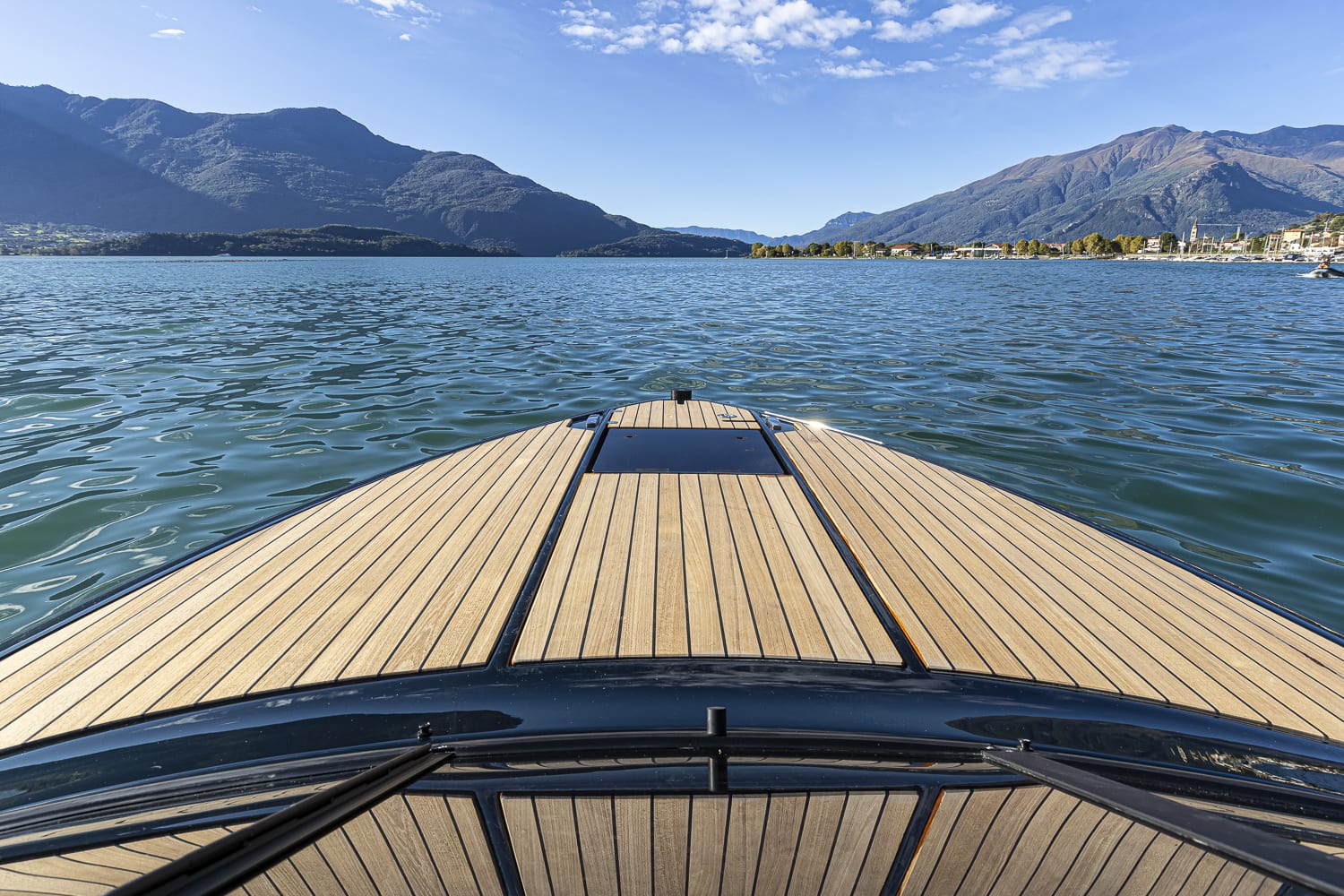 Wyjątkowe nawiązanie tego modelu do tradycji podkreśla pokryty drewnem tekowym pokład dziobowy, przywołujący dziedzictwo drewnianych łodzi. Stanowi on wizualny kontrapunkt dla pokrytej drewnem tekowym platformy rufowej. Nie brak tu bynajmniej innowacyjnych, funkcjonalnych rozwiązań poprawiających komfort w każdej sytuacji. Łódź może się poszczycić dużym pokładem słonecznym, który przykrywa komorę silnika. Wysuwana markiza pozwala w razie potrzeby z łatwością zacienić kokpit. Przestrzeń do siedzenia na środku obejmuje sofę w kształcie litery L, stanowiącą przedłużenie rufowego pokładu słonecznego, oraz dwa fotele obrotowe (prawy dla sternika i lewy dla drugiego sternika). Na czas żeglowania można je zwrócić na dziób, a na potrzeby spotkań towarzyskich skierować na rufę.