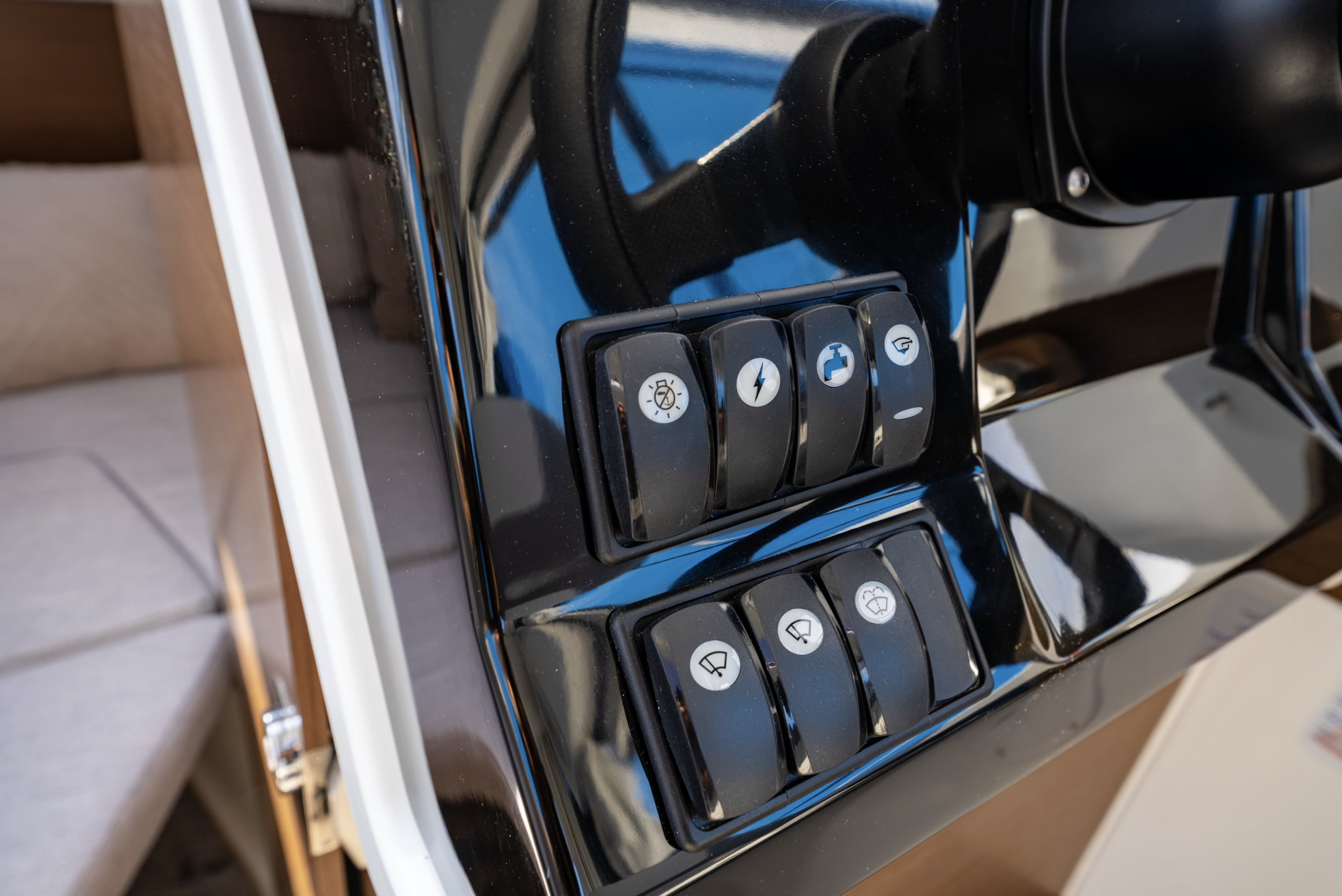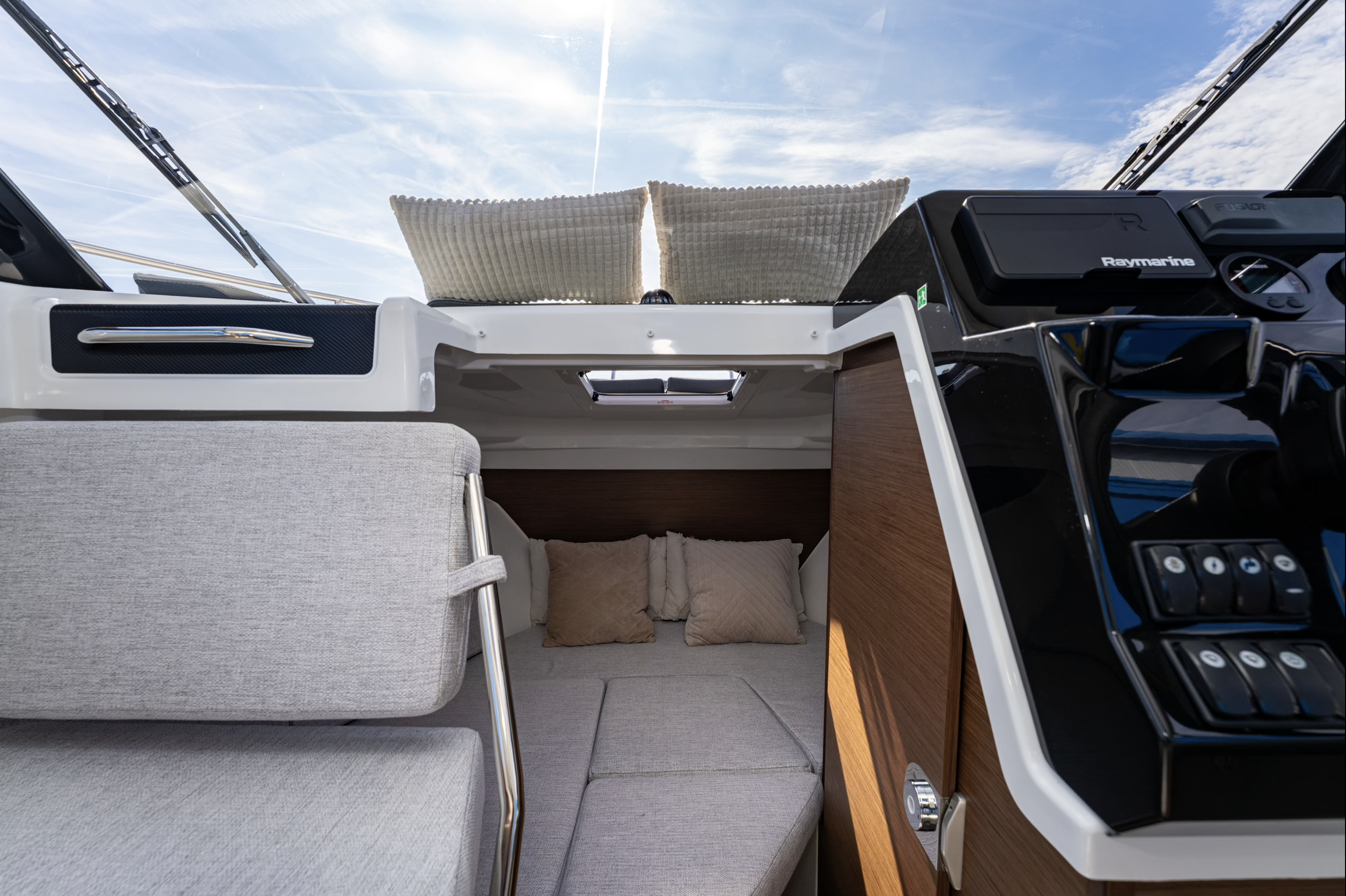 Wysokiej jakości wyposażenie sprawia, że Merry Fisher 695 Series 2 to idealny jacht do rodzinnych wypadów i rejsów przybrzeżnych.