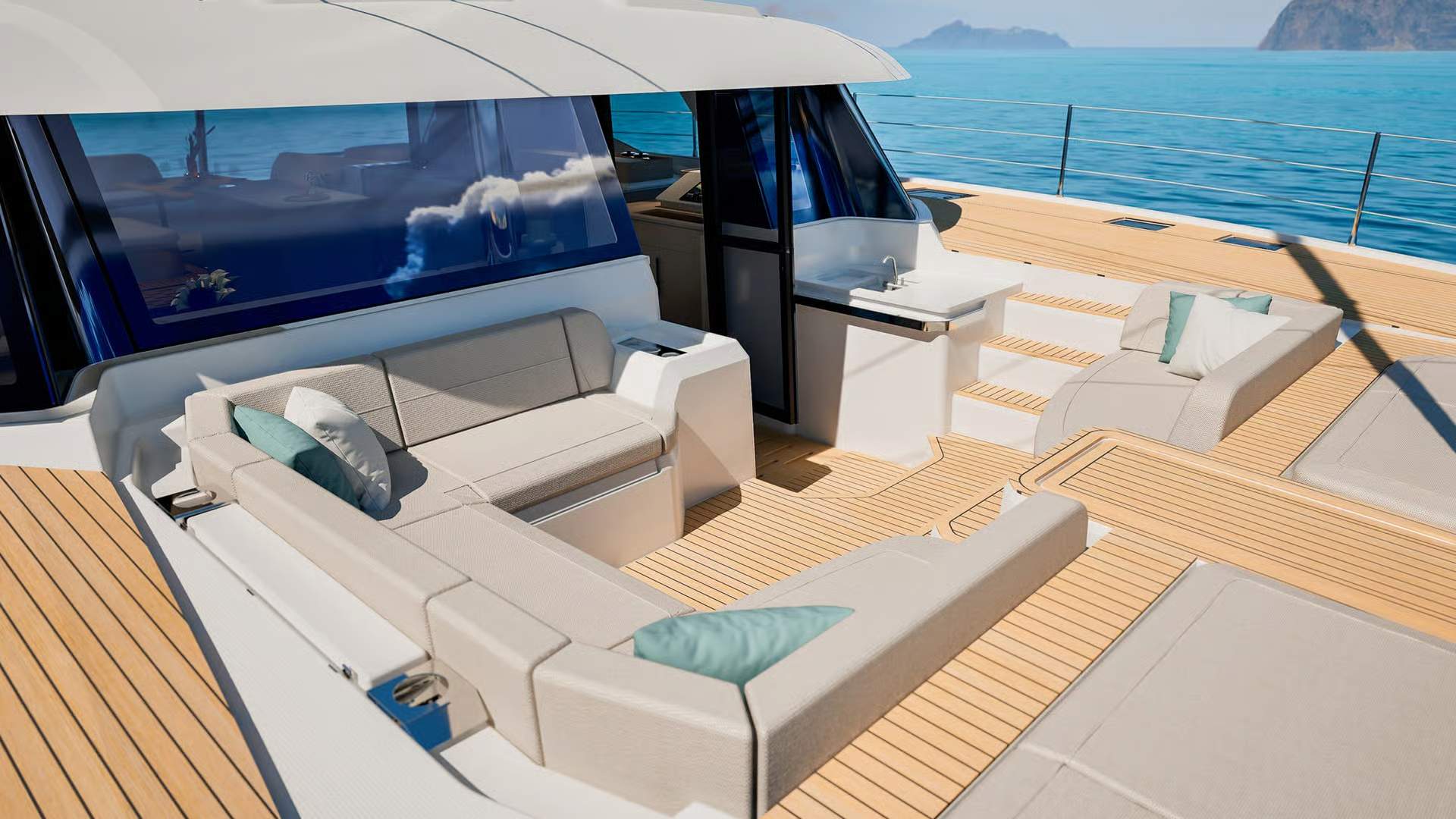 Dzięki aż 6300 W zintegrowanych paneli słonecznych FP55 reprezentuje nową generację jachtów, w których czysta energia nie jest opcją – jest fundamentem żeglugi.