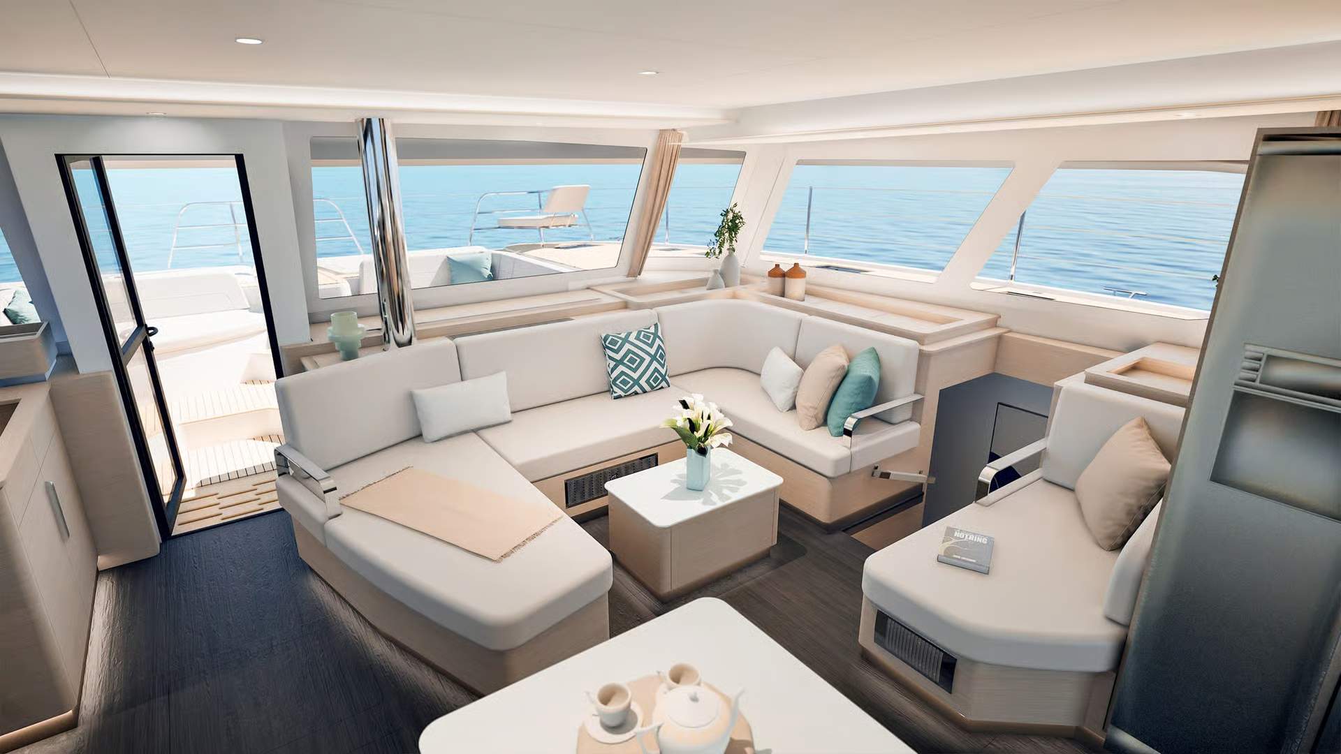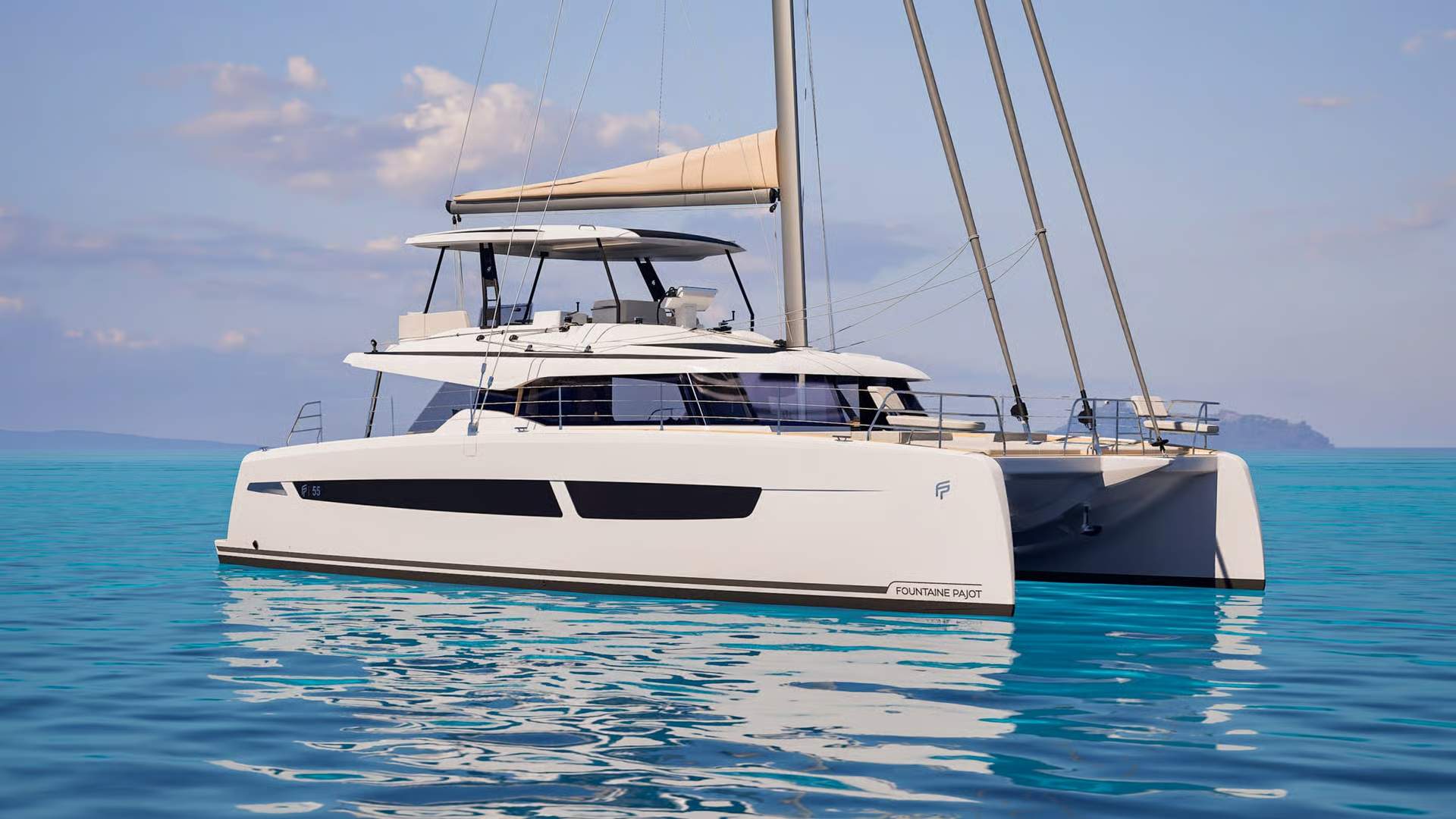 FP55 to pierwszy katamaran cruisingowy Fountaine Pajot wyposażony w bezpośrednie drzwi prowadzące do kokpitu dziobowego, tworzące zupełnie nową koncepcję komunikacji na pokładzie. Świeże powietrze, goście i życie towarzyskie swobodnie przepływają od dziobu do rufy.