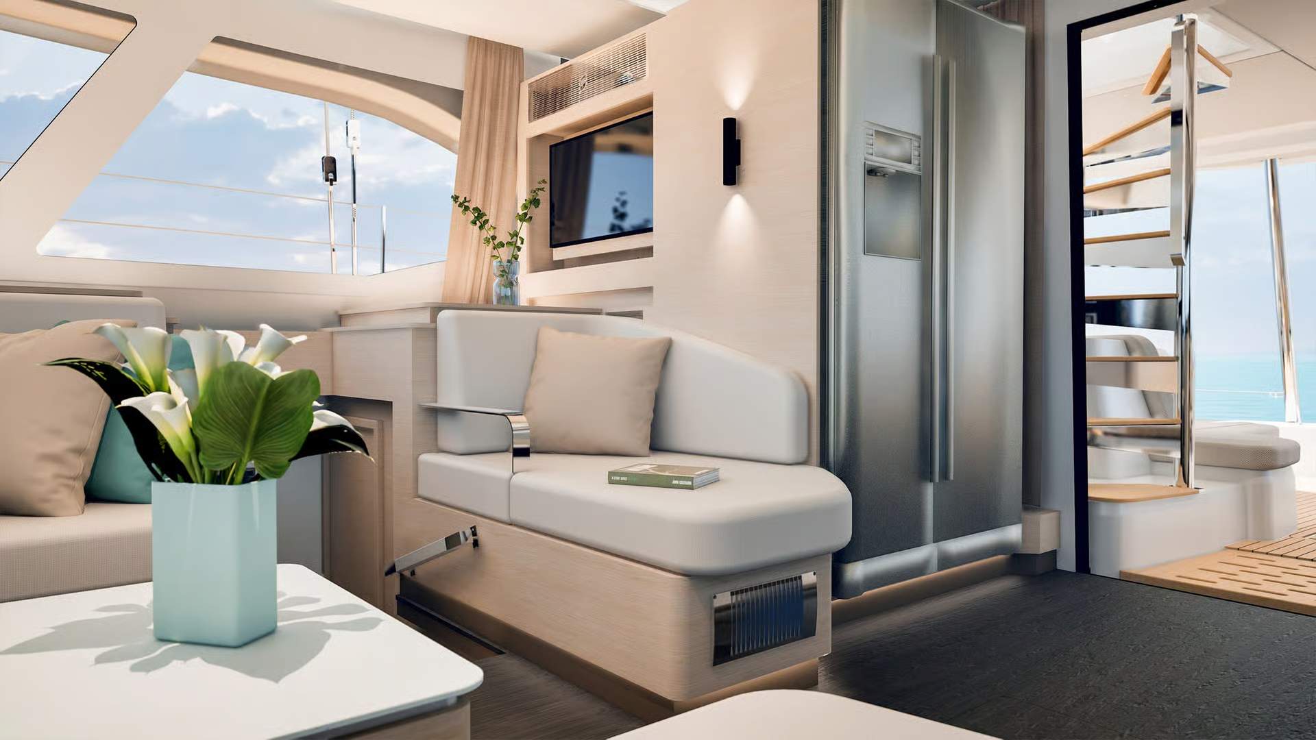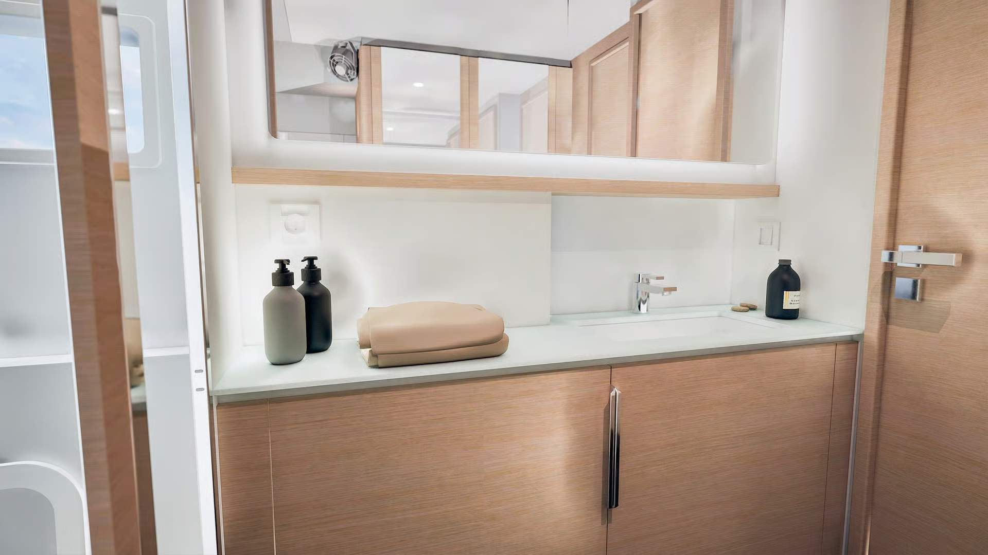 Przy długości niemal 17 metrów FP55 oferuje imponującą przestrzeń zarówno do przyjmowania gości, jak i do prywatnego życia na morzu. To jedyny katamaran cruisingowy tej wielkości na rynku, który może być wyposażony w dwie pełnowymiarowe suity armatorskie – po jednej w każdym kadłubie.