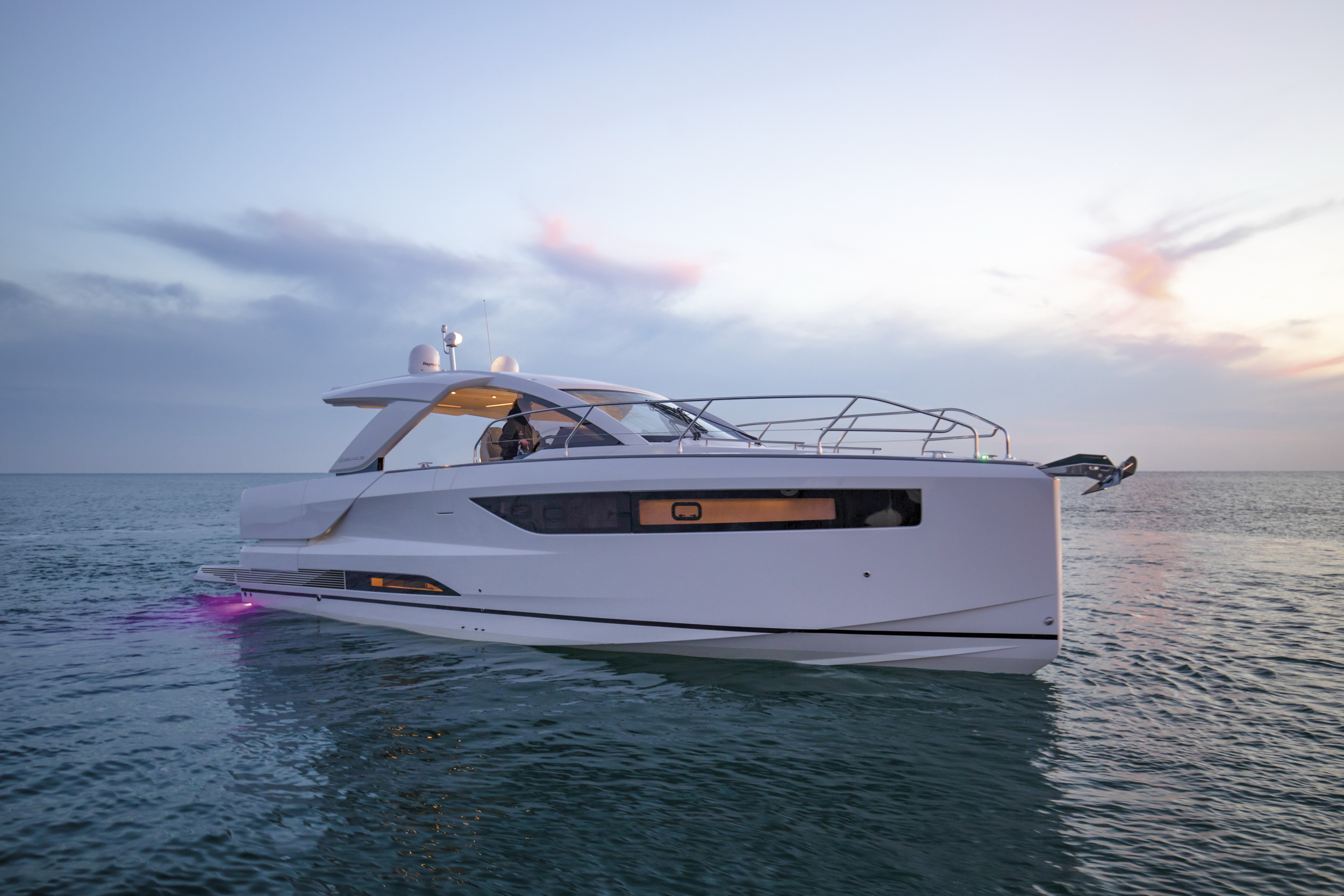 Układ obejmuje komfortową kabinę właścicielską, dodatkową kabinę dla gości oraz łazienkę z toaletą i prysznicem. Dzięki temu DB/43 IB może pełnić rolę luksusowego daycruisera, który zapewnia komfort noclegu podczas weekendowych podróży.