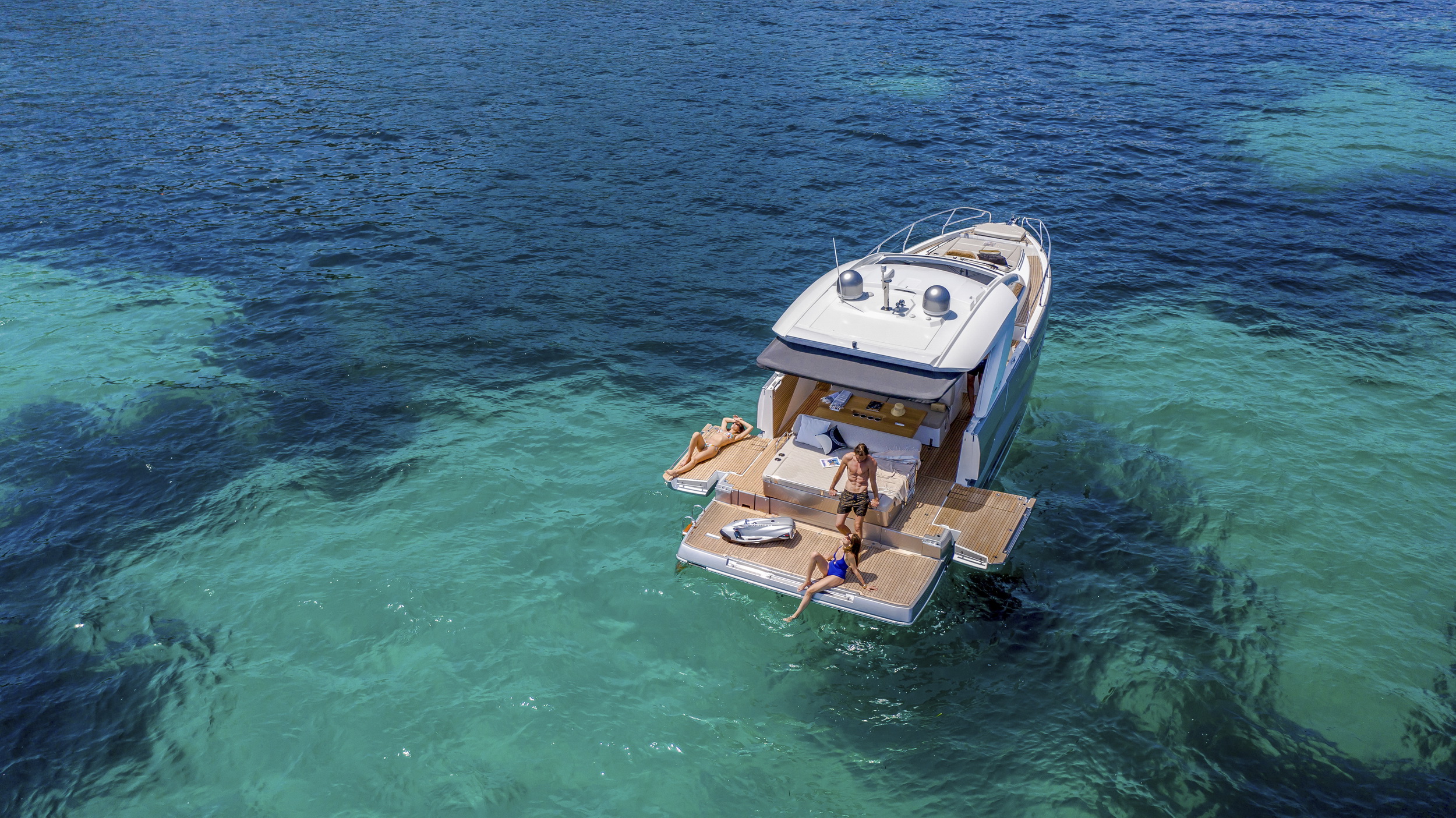 W rufowej części pokładu przewidziano przestrzeń z materacami do opalania oraz łatwy dostęp do wody. Platforma kąpielowa została zaprojektowana tak, aby ułatwiać kąpiele oraz korzystanie ze sprzętu rekreacyjnego podczas postoju.