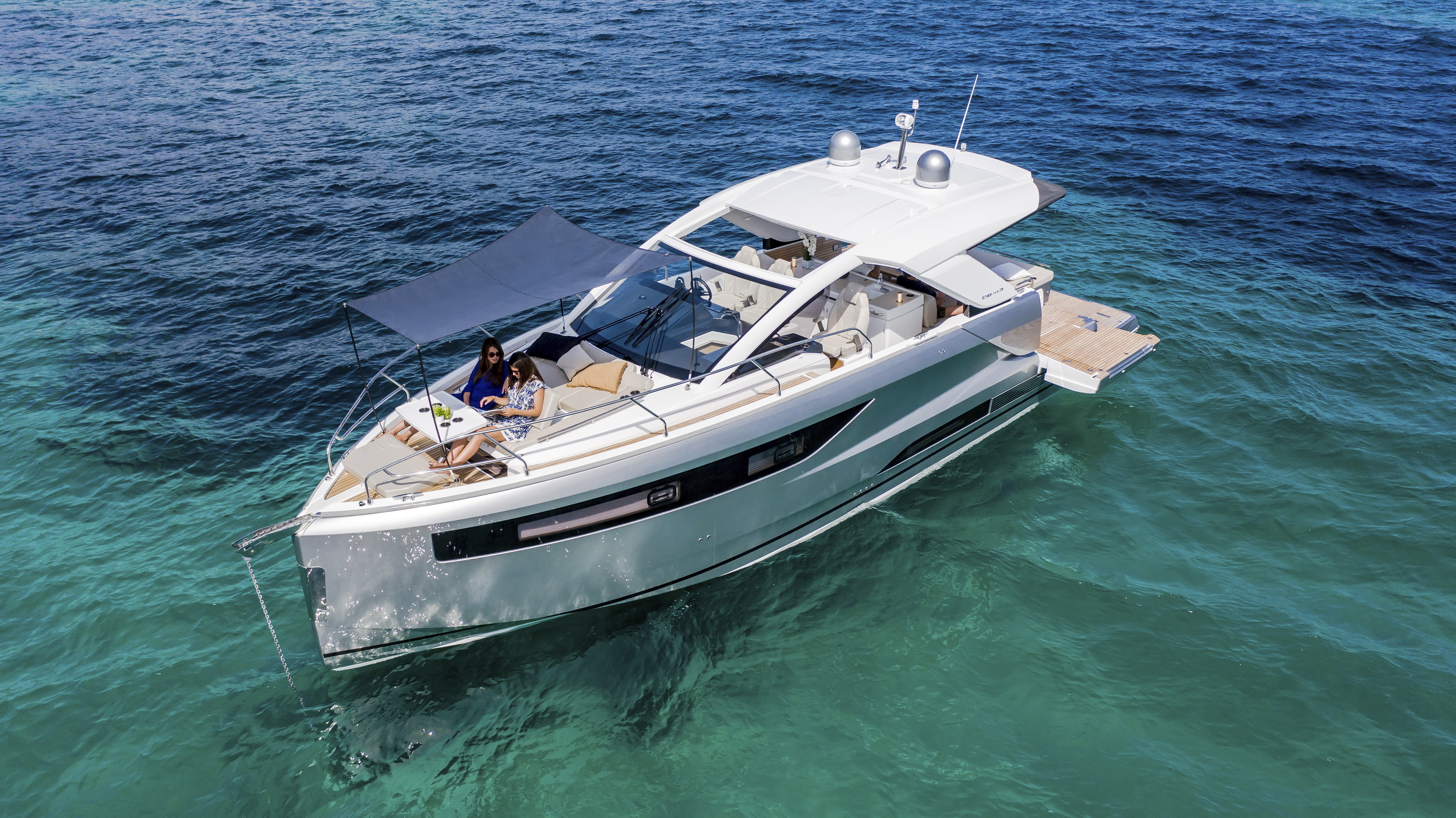 DB/43 IB należy do linii DB Yachts, w której sportowy charakter łodzi dayboat łączy się z komfortem dużej jednostki wypoczynkowej. Model został zaprojektowany jako szybka i luksusowa łódź do dziennych rejsów, spotkań na wodzie oraz kilkudniowych wypadów przybrzeżnych. Dynamiczna sylwetka kadłuba i szeroki pokład tworzą spójną całość nastawioną na wygodę załogi.