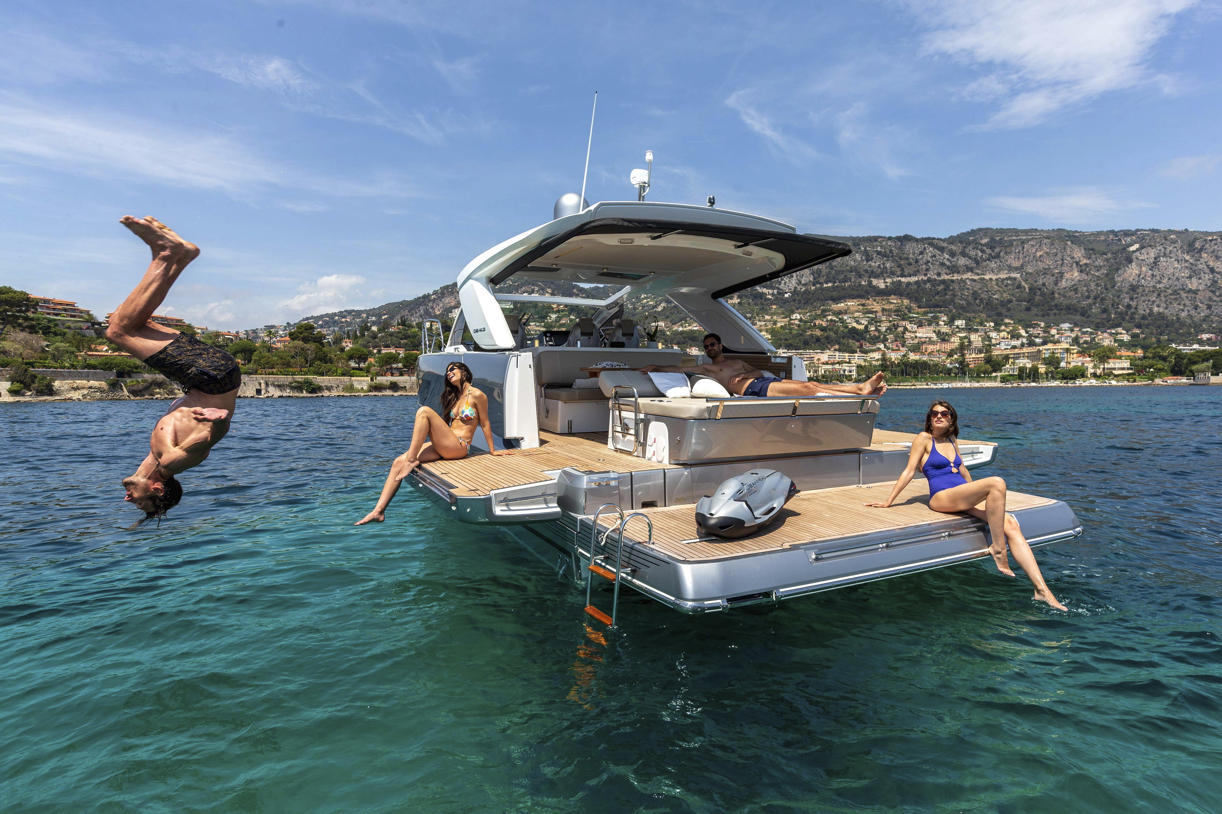 Projekt powstał we współpracy studia Camillo Garroni Design oraz biura architektury morskiej Michael Peters Yacht Design. Wersja IB korzysta z napędu stacjonarnego, który pozwala zachować czystą linię rufy oraz rozbudowaną platformę kąpielową. Dzięki temu przestrzeń przy wodzie staje się naturalnym miejscem relaksu podczas postoju.
