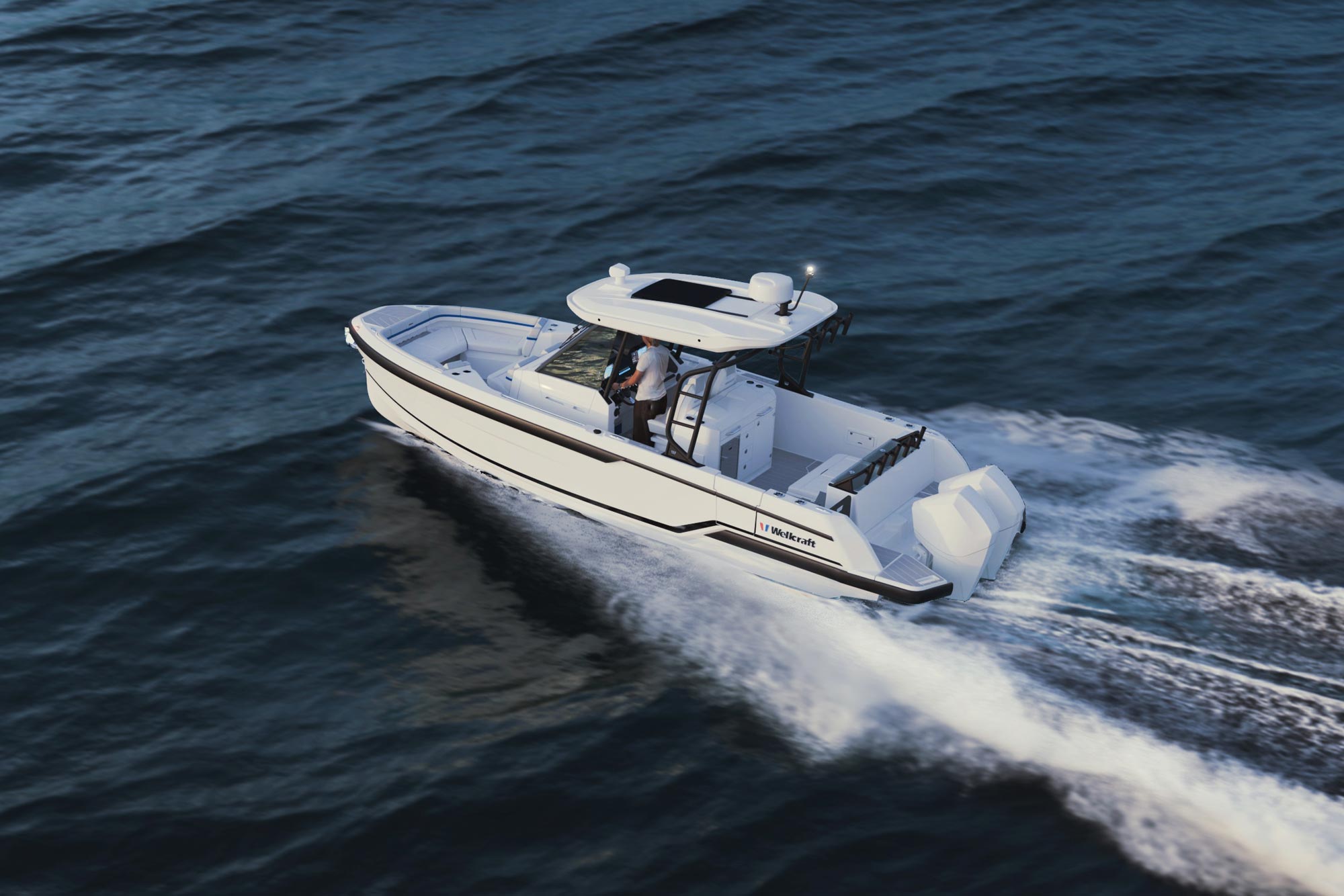 Wellcraft 28 to nowoczesna łódź motorowa typu center console stworzona z myślą o dynamicznym pływaniu i rekreacji na otwartych akwenach. Konstrukcja jednostki łączy sportowy charakter z funkcjonalnością pokładu, która pozwala wygodnie korzystać z łodzi podczas dziennych rejsów, sportów wodnych oraz wędkowania.